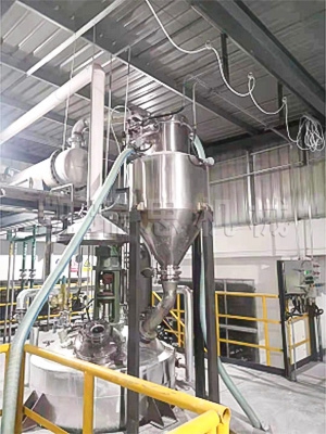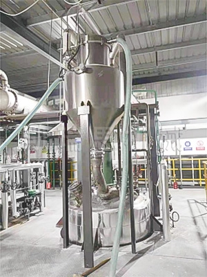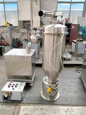 真空粉料機是利用真空泵產(chǎn)生真空,真空產(chǎn)生的負壓將物料從進料口被吸入。然后在在分離容器的過濾倉內(nèi),將空氣與物料進行分離。物料因重力作用而自動落下,物料被收集在料倉中。我們的旋風(fēng)分離器阻止細小粉末進入過濾器,以提高過濾器的效率。待料倉充滿物料時,真空泵自動關(guān)閉,輸送設(shè)備內(nèi)的壓力達到平衡。放料閥開啟,物料通過出料口流出,并直接落入儲料容器。出料時,過濾芯被反吹氣囊自動清潔。下料結(jié)束出料艙自動關(guān)閉,整個輸送流程再次啟動。