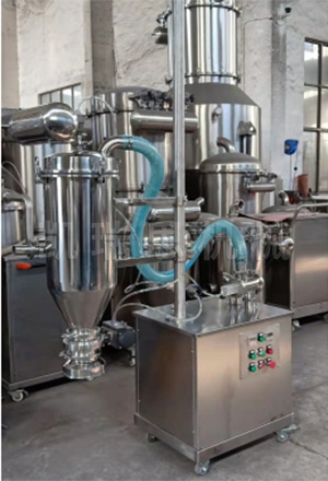 對于二維、三維、雙錐混合機、密閉料倉等抽真空容器,可以選用混合機用真空上料機。通過進料三通等物氣分離裝置,對受料設(shè)備進行抽真空設(shè)備說,物料在受料設(shè)備內(nèi)的真空作用下,從進料口直接吸入受料設(shè)備。此種加料形式下,物料始終處于連續(xù)流動的狀態(tài) ,上料穩(wěn)定、快速,故障率低。